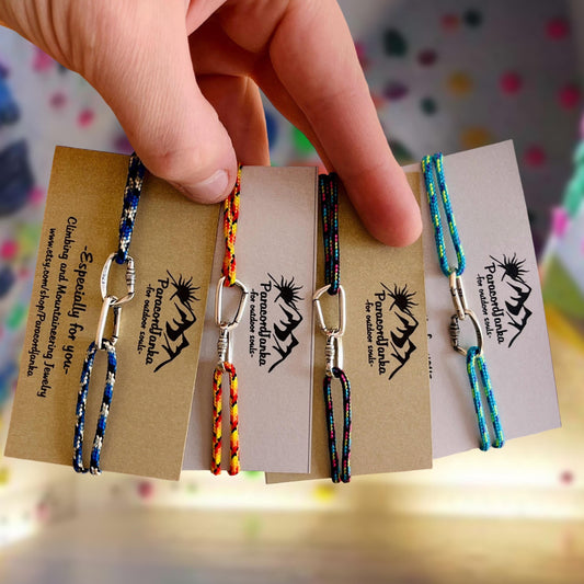 Rainbow Climbing Bracelet Carabiner and Climbing 8, Gift for Climber, Climbing Jewelry