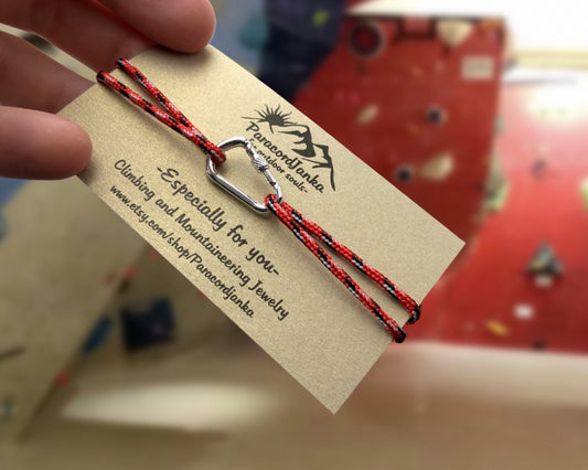 Red Climbing Bracelet Carabiner and Climbing 8, Gift for Climber, Climbing Jewelry